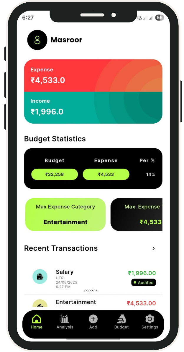 - ✔Manual expense and income entry for cash transactions not recorded in bank messages