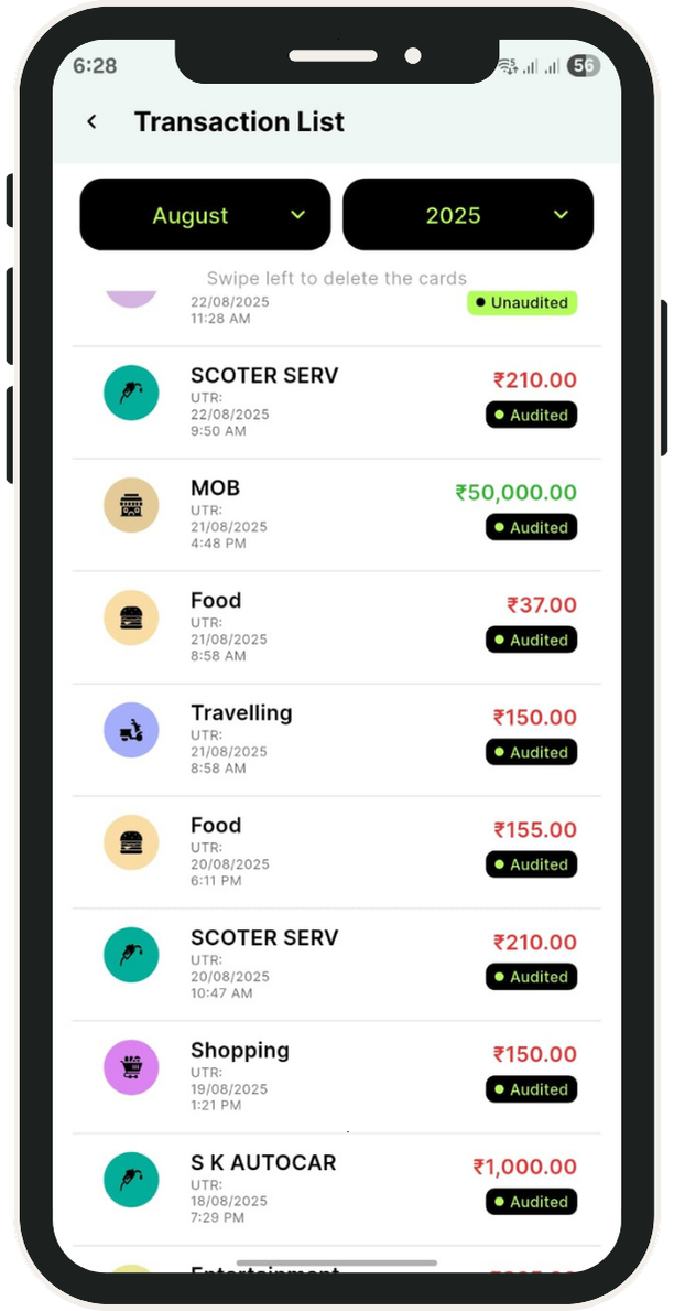 - ✔Smart categorization of transactions such as food, fuel, shopping, utilities, and more